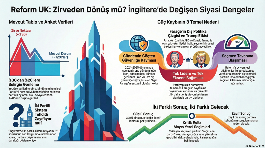 Bir dönem İngiltere siyasetinin en hızlı yükselen gücüydü. Bugün ise aynı parti için yeni bir soru soruluyor:  Reform UK zirveye ulaştı… ve şimdi geri mi dönüyor?