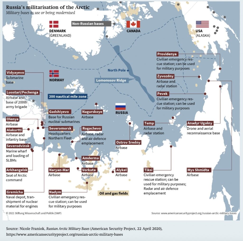 Grönland’ın önemi, yalnızca kendi üzerindeki askerî varlıkla değil, çevresindeki askerî yoğunlukla birlikte anlam kazanır. Rusya, Arktik bölgesinde son on yılda belirgin bir askerî yeniden yapılanma süreci yürütmüştür. Kola Yarımadası’nda konuşlu Kuzey Filosu; balistik füze denizaltıları (SSBN), nükleer tahrikli saldırı denizaltıları (SSN) ve uzun menzilli bombardıman uçaklarıyla Rus nükleer caydırıcılığının merkezlerinden biri olarak işlev görmektedir (Østhagen, 2019; Al Jazeera, 2025).